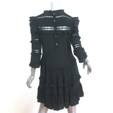 Rebecca Taylor Mini Dress Black Lace-Trim Ruffled Silk Size 6