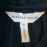 Rebecca Taylor Sarah Lace-Paneled Top Navy Silk Size 0 Tie-Cuff Blouse