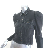Retrofete Ada Puff Sleeve Denim Jacket Faded Black Stretch Cotton Size Small