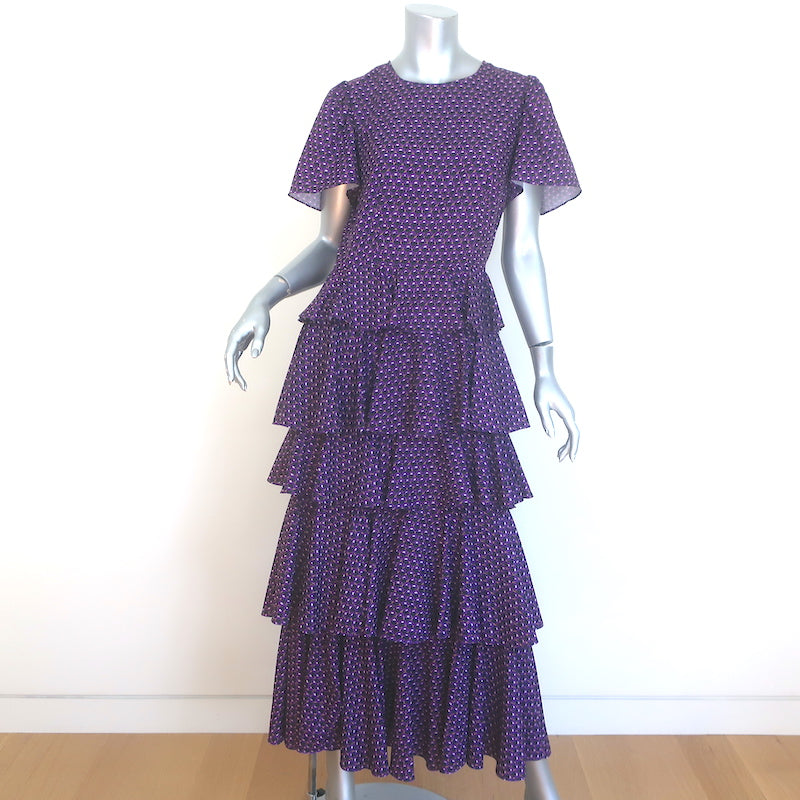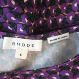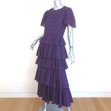 Rhode Serena Tiered Midi Dress Purple Printed Crepe Size 6