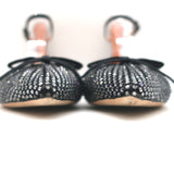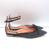 Rochas Rhinestone-Embellished Ankle Strap Bow Flats Black Satin Size 38.5