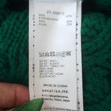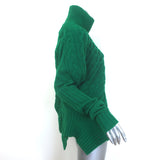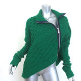 This pre-owned piece is crafted from soft wool in a rich green cable stitch and features Sacai’s signature asymmetric open-side silhouette with a cozy turtleneck. Labeled Size 1, the sweater is gently worn and in excellent condition with no visible flaws—an elevated wardrobe piece offered at a compelling resale price.