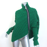 Sacai asymmetric open-side turtleneck sweater in green cable knit blends sculptural, editorial design with everyday wearability, making it a striking choice for anyone who appreciates inventive knitwear and refined construction.