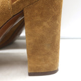 Khaite Georgia Ruched-Strap Kitten Heel Sandals Caramel Suede Size 40.5