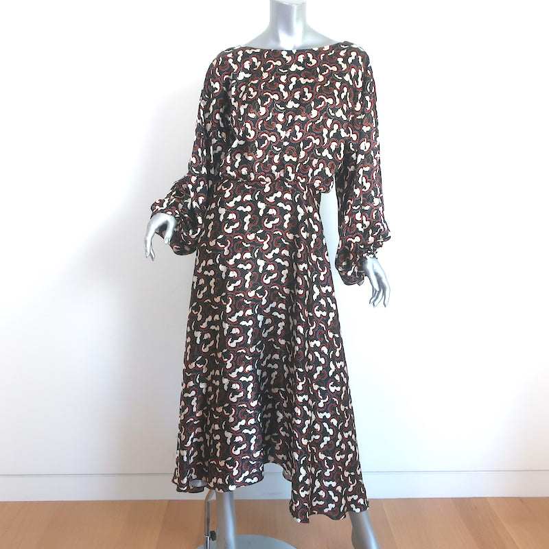 Saloni Kim-B Blouson Sleeve Midi Dress Black Daybreak Print Silk Size US 8