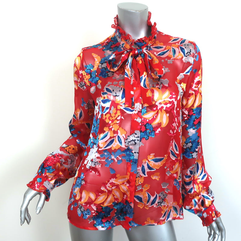 Saloni Tie-Neck Top Emile Red Floral Chiffon Size US 8 Long Sleeve Blouse