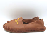 Salvatore Ferragamo Gus Logo Espadrilles Brown Grained Leather Size 8 C