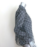 Sandy Liang Toney embroidered mesh top in navy gingham, size 6 pairs vintage-inspired gingham with a delicate embroidered mesh overlay for a look that's simultaneously nostalgic and modern.