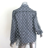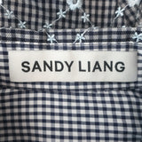 Sandy Liang Toney Embroidered Mesh-Overlay Top Navy Gingham Size 6