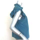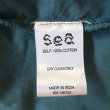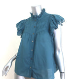 SEA Adrienne Embroidered-Trim Top Teal Cotton Size Medium Button-Up Blouse