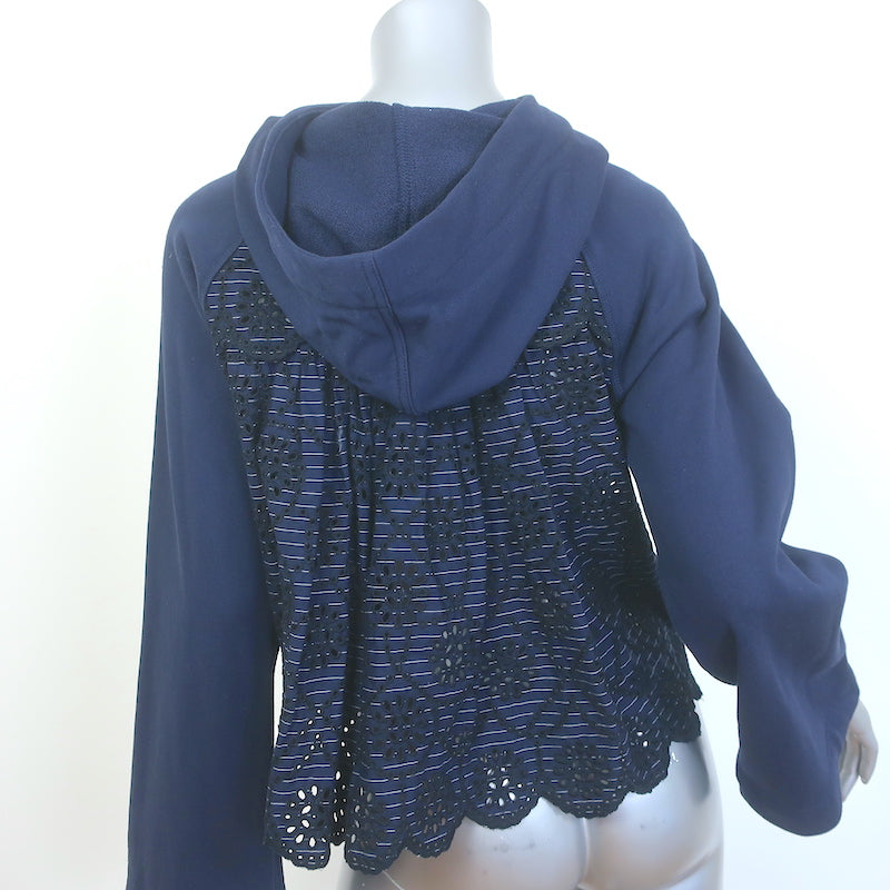 SEA Broderie Anglaise Back Hoodie Sweatshirt Navy Cotton Size Extra Small NEW