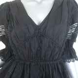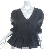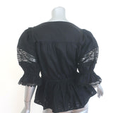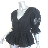 Self-Portrait Broderie Anglaise Peplum Top Black Lace-Trim Cotton Size US 6