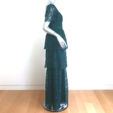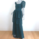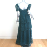 Self-Portrait Guipure Lace Puff Sleeve Tiered Maxi Dress Dark Teal Size US 4