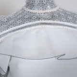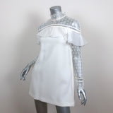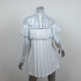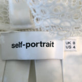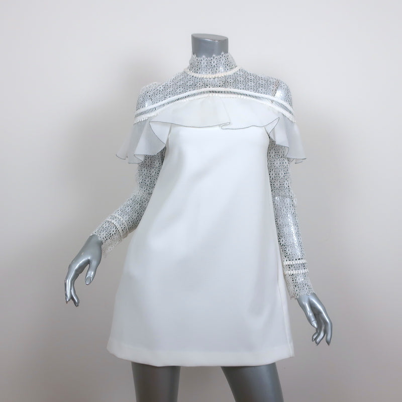 Self-Portrait Long Sleeve Ruffle Mini Dress White Lace-Trim Crepe Size US 4