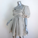 Self-Portrait Monochrome Check Puff Sleeve Mini Dress Cream Taffeta Size 0 NEW