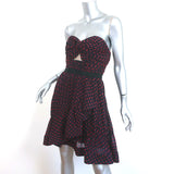 Self-Portrait Strapless Mini Dress Navy/Red Dot Print Georgette Size US 6 NEW