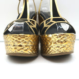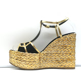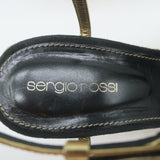 Sergio Rossi Espadrille Wedge Sandals Easy Puzzle Black Cutout Suede Size 37.5