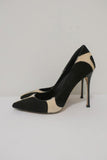Sergio Rossi Pumps Black/Cream Giraffe Print Pony Hair Size 36 Pointed Toe Heel