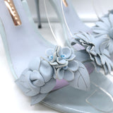 Sophia Webster Lilico Flower-Embellished Sandals Light Blue Leather Size 38