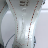 Pre-loved. Good condition. Wear on corners of toes and heels. Light distressing on ruched straps. Faint smudging on straps. Toe imprints on...