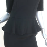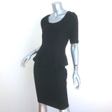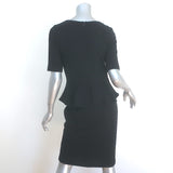 St. John Caviar Short Sleeve Peplum Dress Black Wool Pique Size 4 NEW