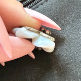 Pre-loved. Good condition. A few small, faint scuffs on leather are only visible in certain lighting. One pearl is missing. An extra...