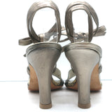 Stuart Weitzman Ankle Wrap Sandals Pewter/Gold Metallic Leather Size 8.5