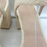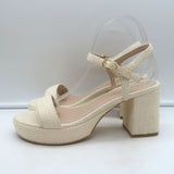 Stuart Weitzman Dancer Platform Sandals Cream Raffia Size 9 Ankle Strap Heels