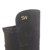 These Keelan City boots pair Stuart Weitzman’s streamlined silhouette with soft, high-quality slate-gray suede and careful construction—think a smooth knee-high shaft, clean proportions, and understated detailing that reads luxurious without being fussy. This listing is for a single pair in US size 8, offered pre-owned but new in box and unworn; the pair includes the dust bag and shows no visible wear.