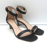 Stuart Weitzman Square Nudist Sandals Black Leather Size 9 Ankle Strap Heels NEW