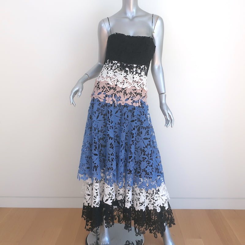 Talbot Runhof Tiered Guipure Lace Maxi Dress Size 8