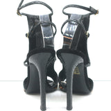 Pre-loved. Good condition. No major flaws, suede is lightly worn along edges of toes and top edges of heels. Elastic is a little stretched out. Brown smudging on heels above pins. Does not come with box or dustbag. Retails for $995!