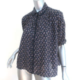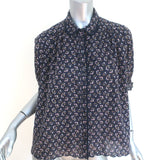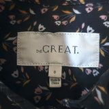 THE GREAT Button Down Top Charcoal Floral Print Scalloped Cotton Size 0
