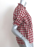 THE GREAT Checked Puff Sleeve Top Red/Ecru Size 0 Button-Up Blouse