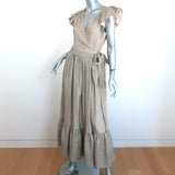 THE GREAT Flutter Sleeve Maxi Wrap Dress Beige Striped Linen-Cotton Size 1