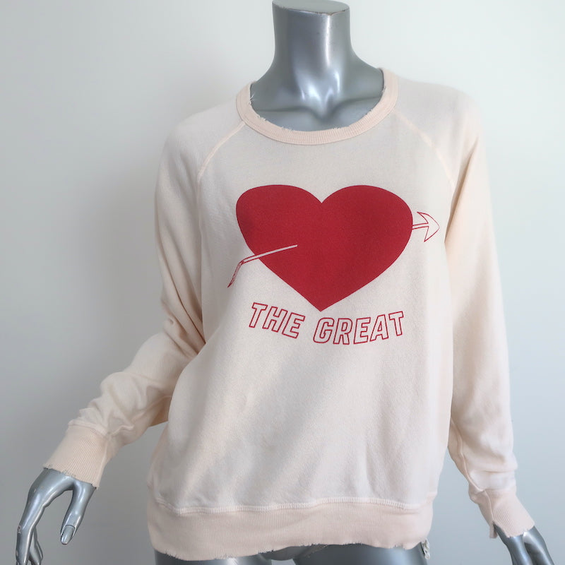 THE GREAT Heart College Sweatshirt Very Light Pink Size 1