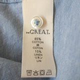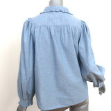 THE GREAT Hemingway Ruffle Collar Top Light Chambray Size 1 Long Sleeve Blouse Measurements