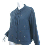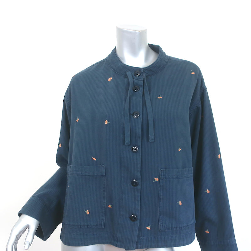 THE GREAT Jacket Navy Floral-Embroidered Cotton Size 0