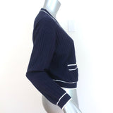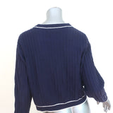THE GREAT The Athletic Cardigan Navy Ribbed Knit Size 1 V-Neck Sweater