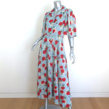 THE GREAT The Bridge Snap-Front Midi Dress Light Blue Floral Print Cotton Size 2 Measurements