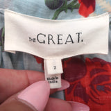 THE GREAT The Bridge Snap-Front Midi Dress Light Blue Floral Print Cotton Size 2