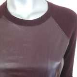 The Kooples Leather-Front Raglan Sweater Burgundy Wool-Blend Size Medium