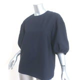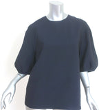 Tibi Balloon Sleeve Top Navy Crepe Size 6 Crewneck Blouse