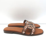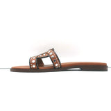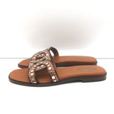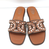 Tod's Kate Studded Slide Sandals Brown Leather Size 36.5 NEW