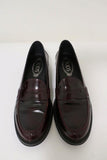 Tod's Penny Loafers Burgundy Glossy Leather Size 37.5 Slip-On Flats -