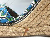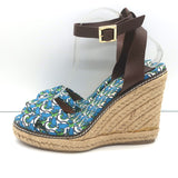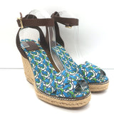 Tory Burch Frog Print Canvas Platform Espadrille Wedge Sandals Size 10