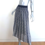 Tory Burch Pleated Knit Jacquard Midi Skirt Navy Link Print Size Extra Small