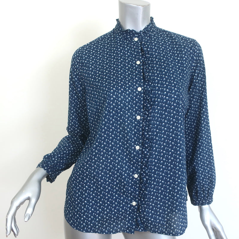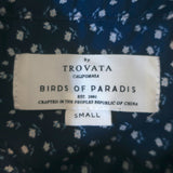 Trovata Birds of Paradis Helena Ruffle Shirt Navy Floral Print Cotton Size Small