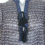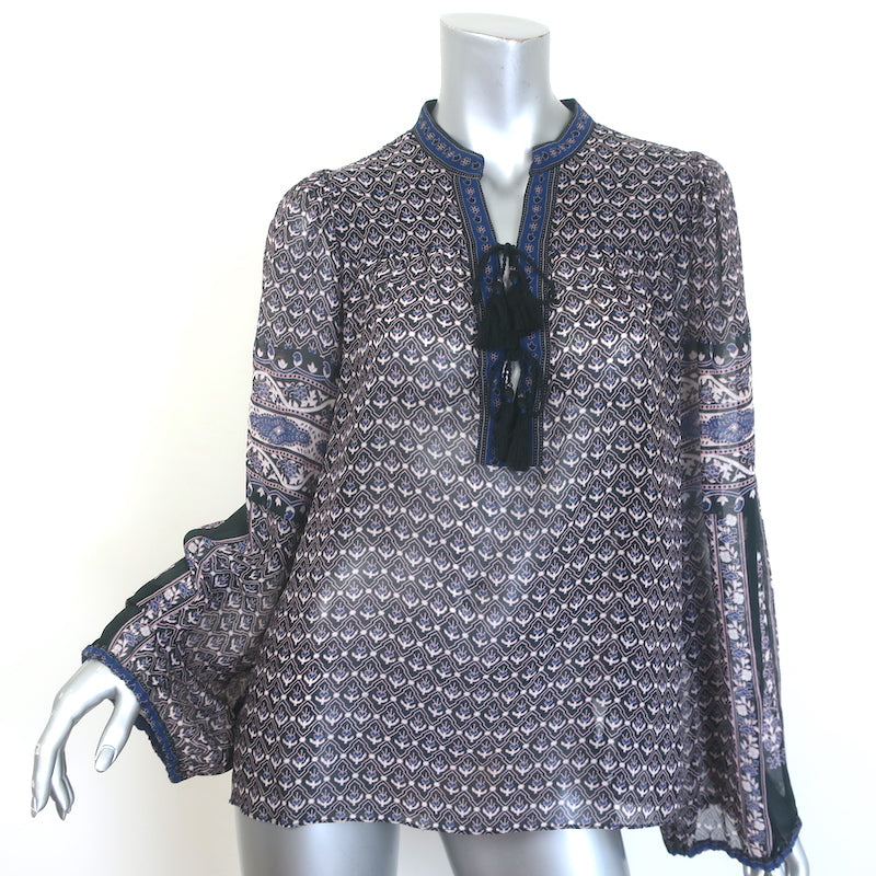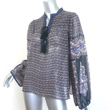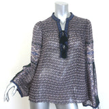 Ulla Johnson Amala Tie-Neck Blouse Black Printed Chiffon Size 10 Long Sleeve Top