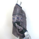 Pre-loved. Thin runs in fabric throughout top are mostly camouflaged by print. Retails for $390!